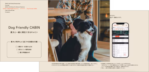 愛犬と一緒に車で到着。フロント手続き不要で暗証番号だけでキャビンに入室。